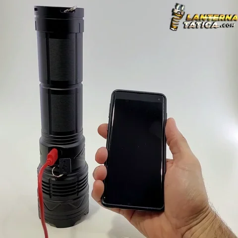 A Lanterna Tática LASER TITAN com alcance de 5km de distância, acompanha 4 pack de bateria recarregável, onde cada pack contém 2 baterias internas, totalizando 8 baterias 18650 de longa duração e pode ser recarregada utilizando o carregador do seu próprio celular, o que é muito