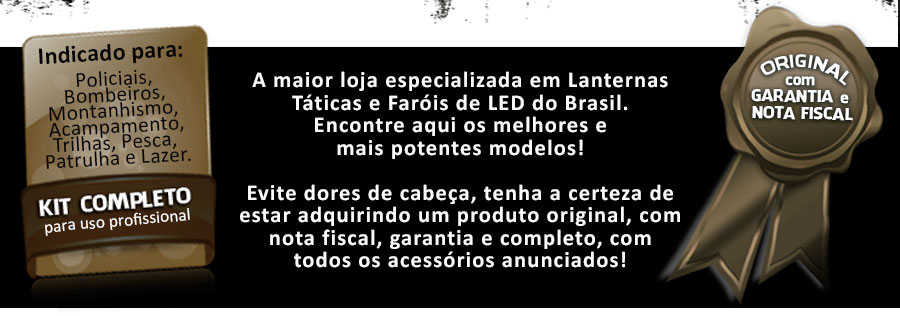 A maior loja especializada em Lanterna Tática, Lanterna Police, Lanterna de LED, Lanterna Tática Police, Lanterna Importada Police, Lanterna Importadas LED, Lanternas Táticas, Lanterna Para Mergulho, Lanterna de Cabeça, Lanterna com Sinalizador, Lanterna para Bike, Farol Para Bike, Bateria 18650, Lanterna para Bicicleta, Farol Para Bicicleta. Temos os modelos mais potentes e forte de lanternas! Nunca te deixaremos no escuro!